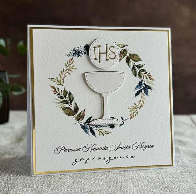 Eleganckie, ręcznie robione, personalizowane zaproszenia komunijne.