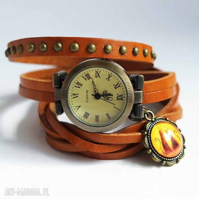 Zegarek - kotki - owijany, skóra, nity