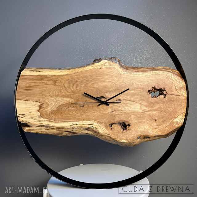 Zegar duży drewniany na ścianę | średnica 70 cm | stalowa obręcz | 100% personalizacja produktu